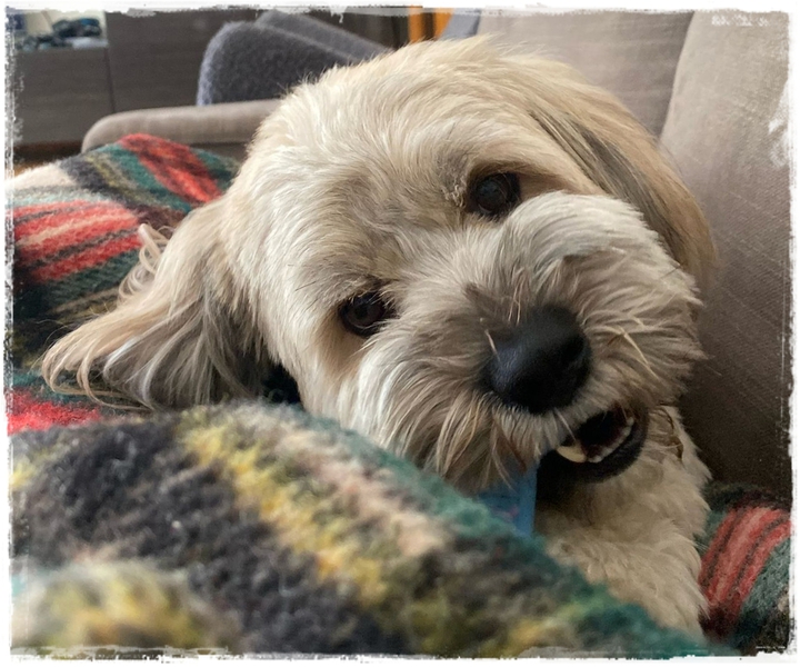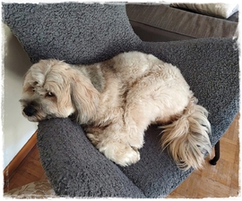 Pablo mit seinem süßen Blick. Sessel und Sofa gehören ihm : -)
